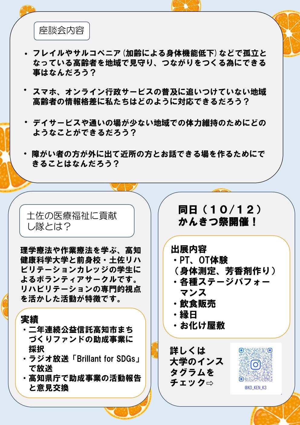 会場:学園祭会場内 :高知健康科学大学 講義棟「103教室」