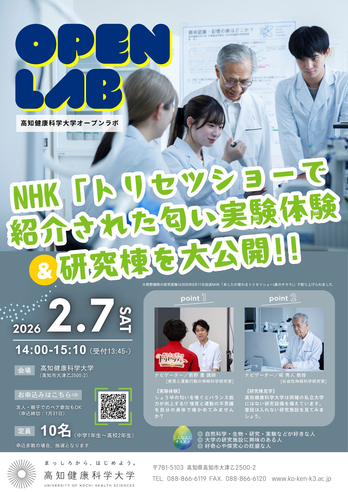 2/7研究イベント「OPEN LAB」開催!NHKトリセツショーで話題の実験体験