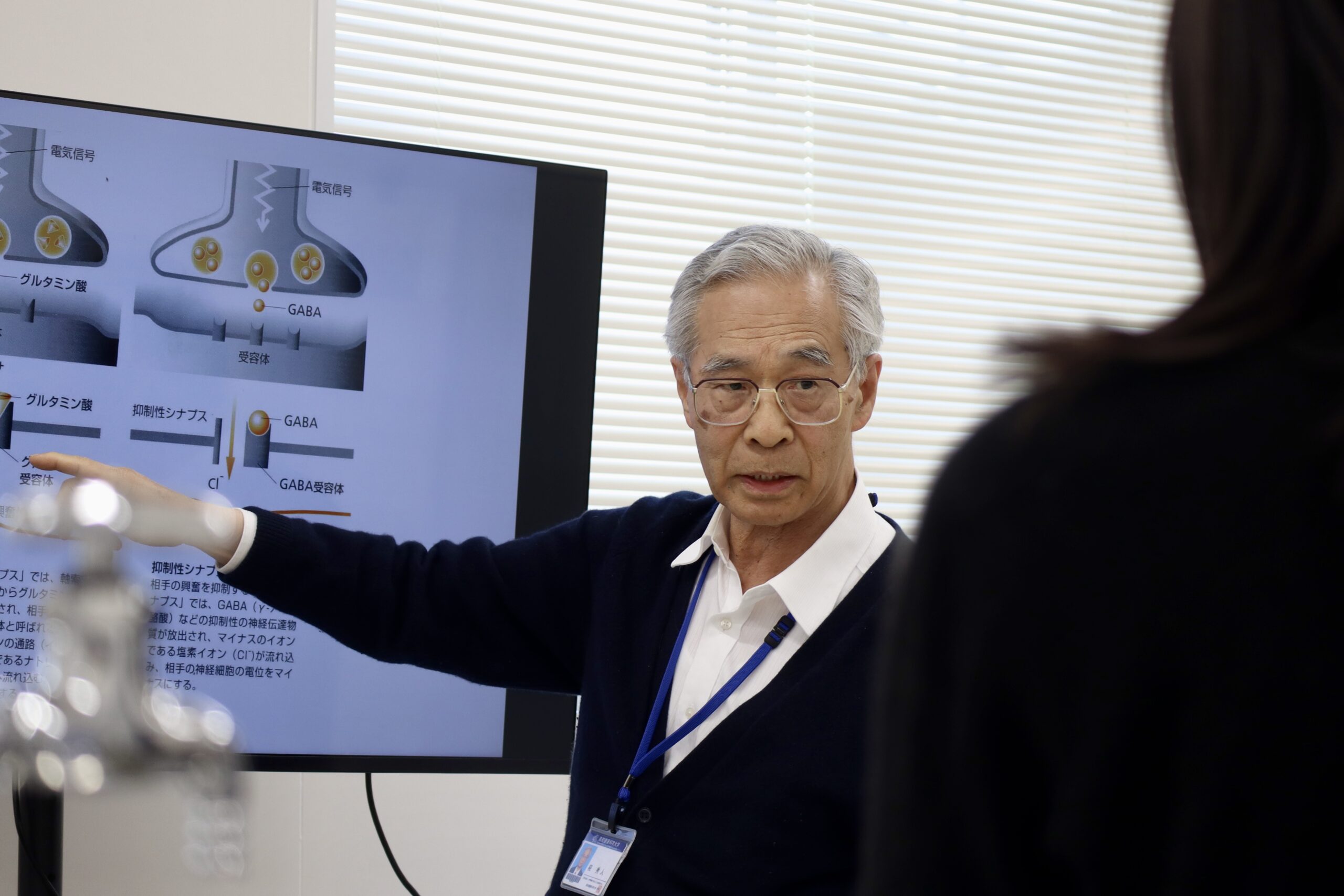 研究棟では、椛教授(作業療法学専攻)が研究機器やマウスを用いた実験について解説しました。
