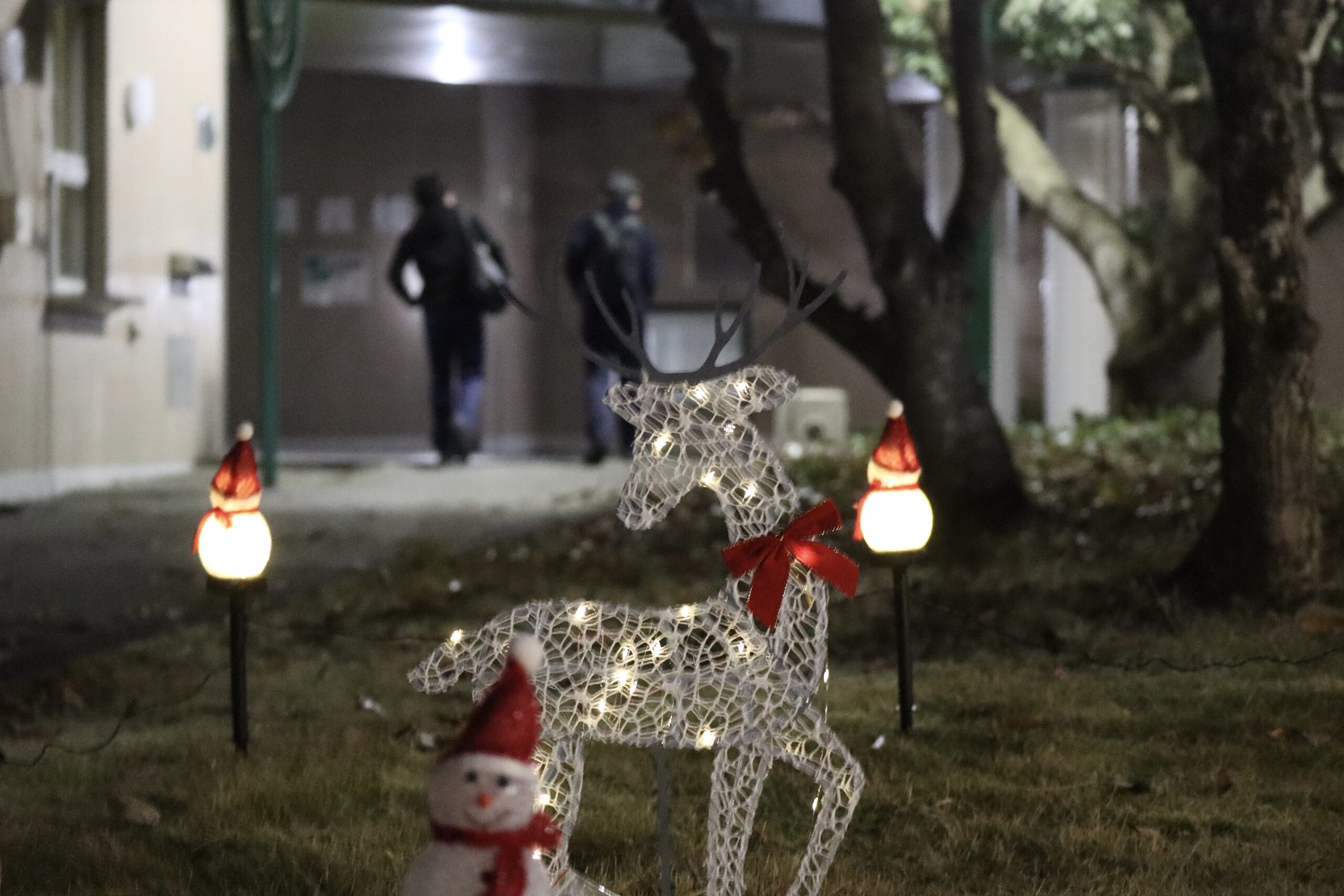 試験を終え帰校した学生たちを出迎える光となります。