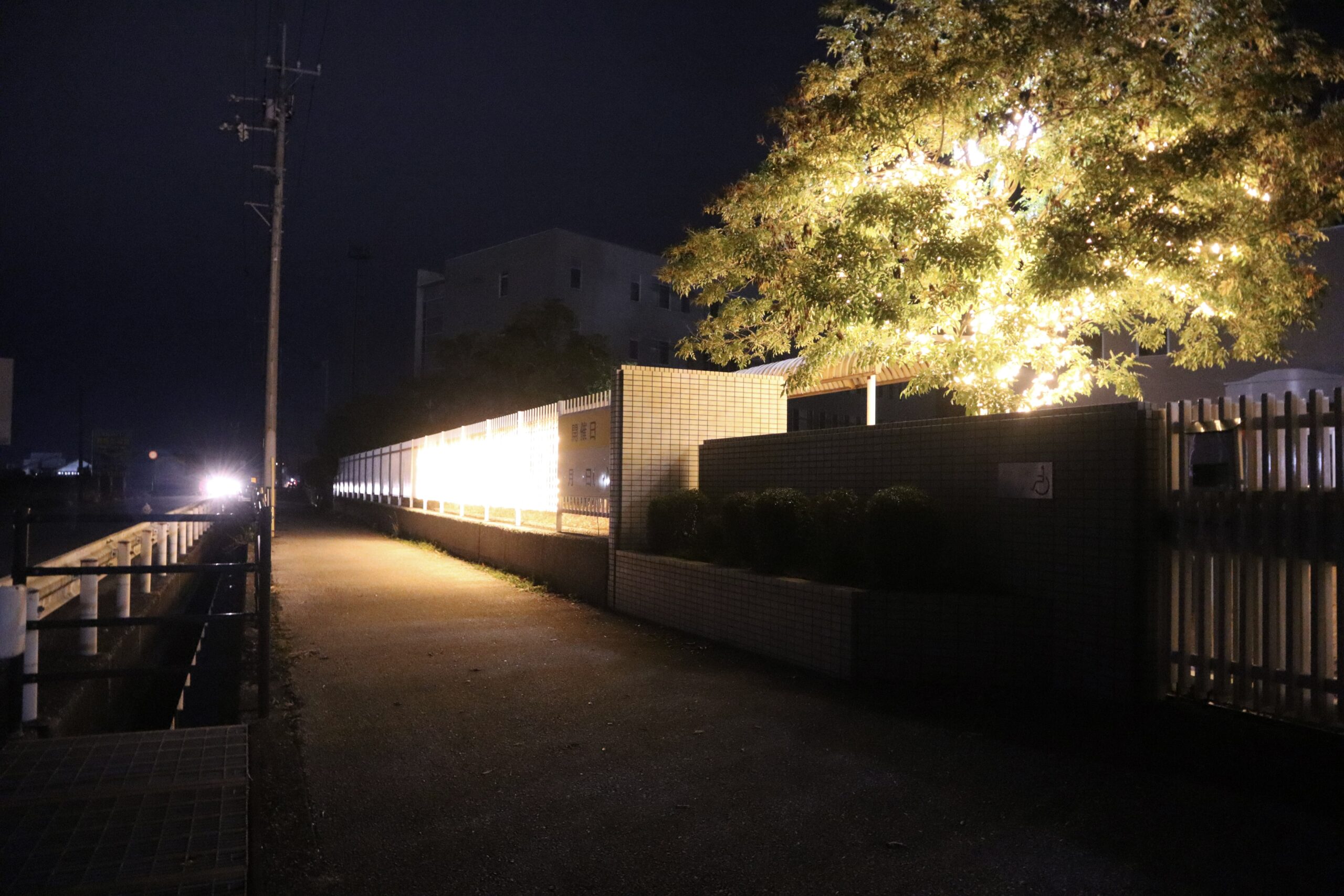 新たな点灯箇所は、来客用駐車場から校舎までのルート沿いの
