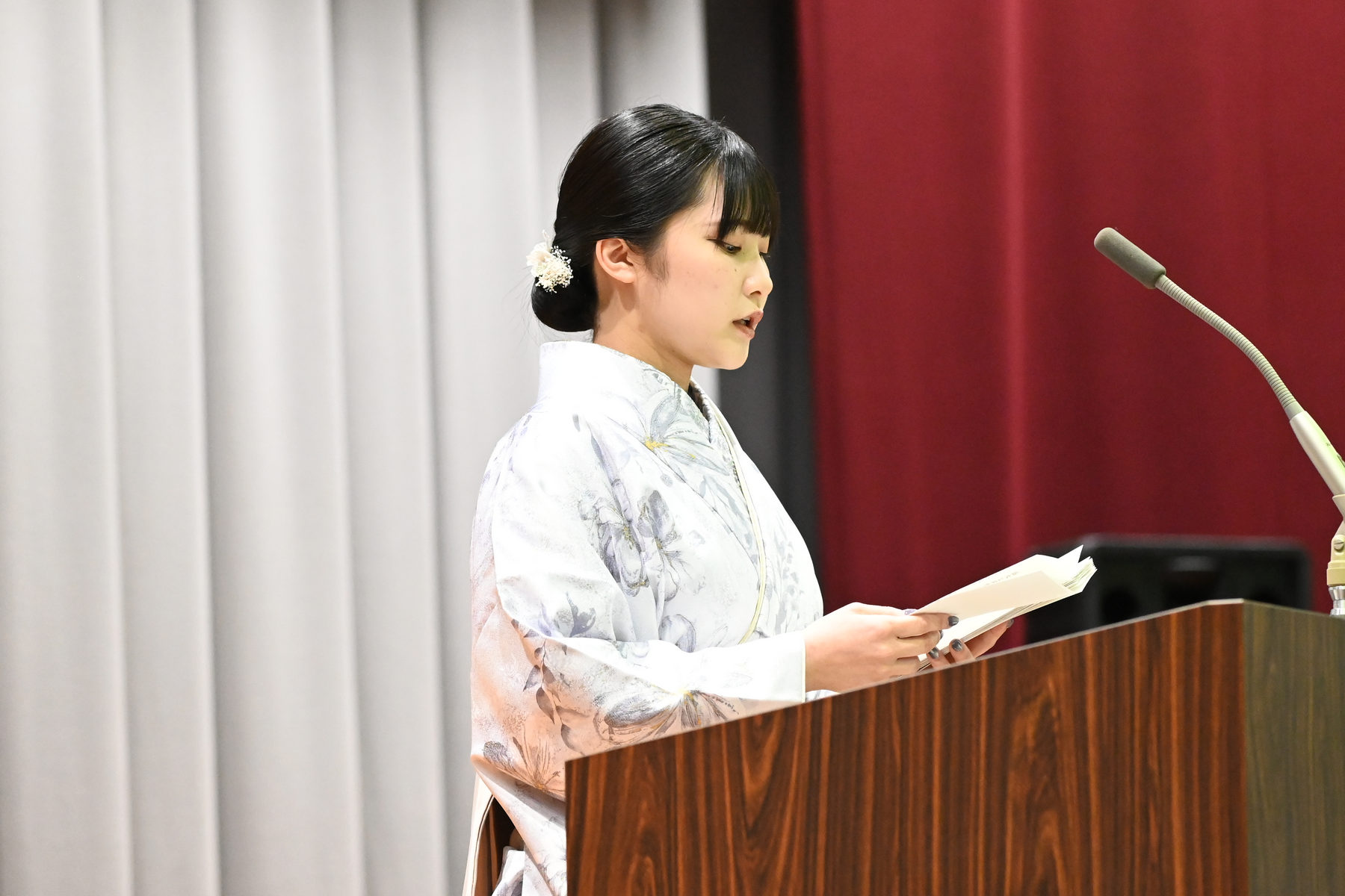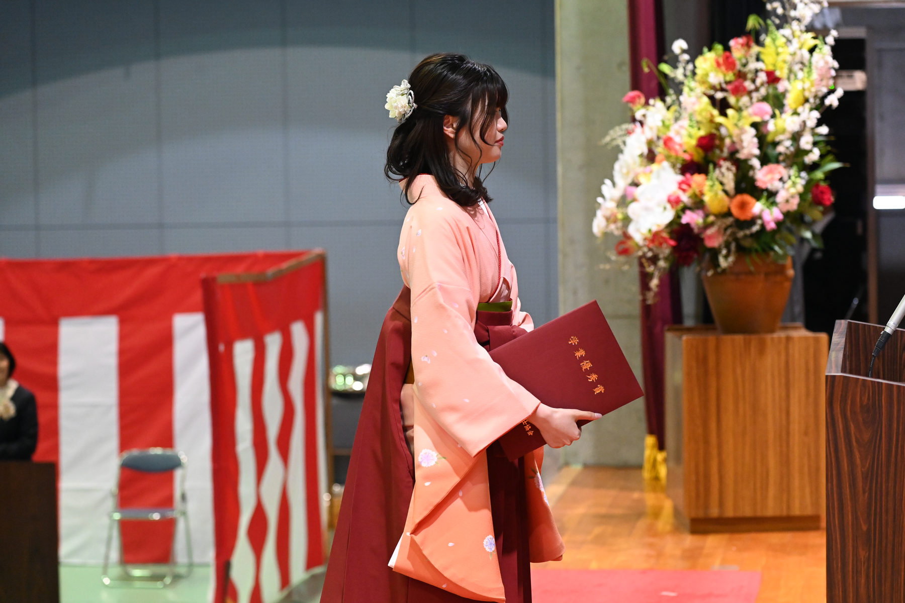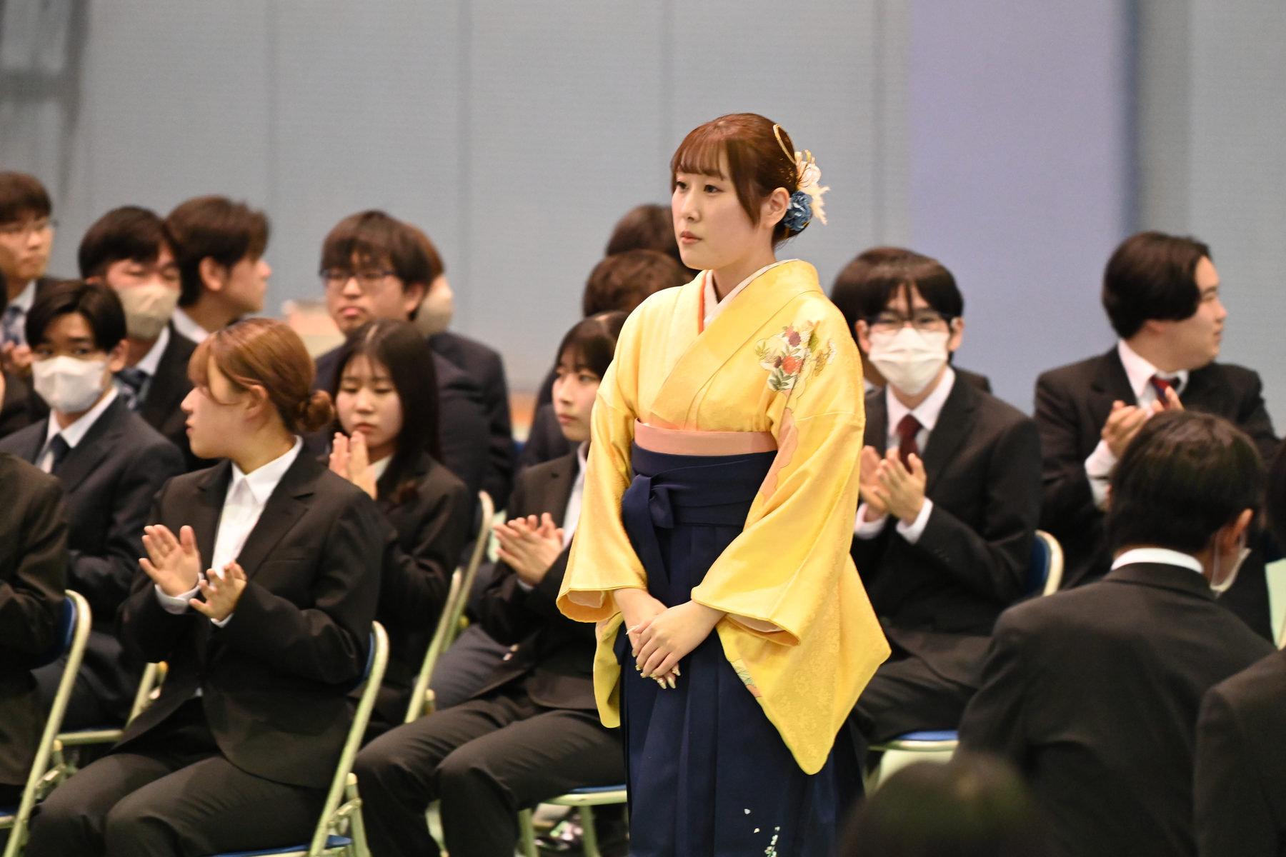 華やかな装いに身を包んだ卒業生が入場すると、集まった保護者や在校生、来賓の方々が温かく迎えました。