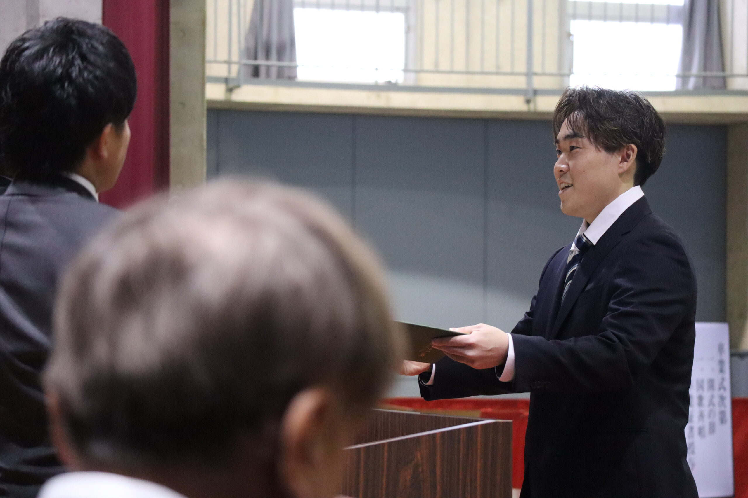 式典は竹林副校長の開式の辞で始まり、続いて卒業証書授与、学業優秀賞授与などが行われました。